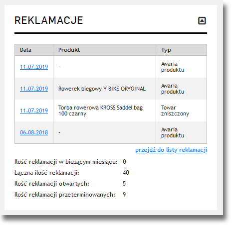 Informacja o ilości otwartych oraz przeterminowanych reklamacjach - w panelu administratora w zakładce Dashboard w tabeli “Reklamacje” dodano dwa nowe wiersze: Ilość reklamacji otwartych: - uwzględnia wszystkie reklamacje, które nie posiadają statusu reklamacji rozpatrzonych (Ustawienia → Konfiguracja sklepu → B2B → Reklamacje) Ilość reklamacji przeterminowanych - uwzględnia wszystkie reklamacje otwarte, które są przeterminowane