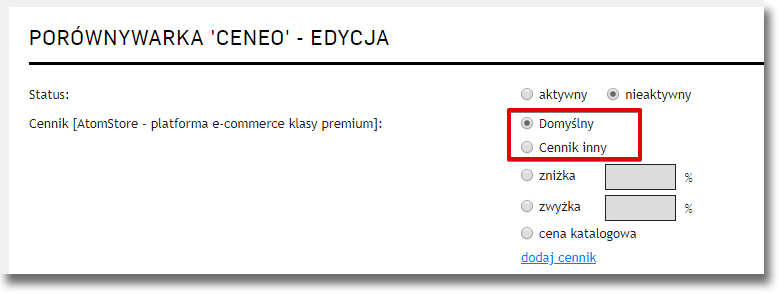 Wskazanie domyślnego cennika dla wybranej porównywarki - w ustawieniach porównywarek w zakładce Multichannel → Porównywarki pojawiła się możliwość wyboru dowolnego cennika dostępnego w sklepie.