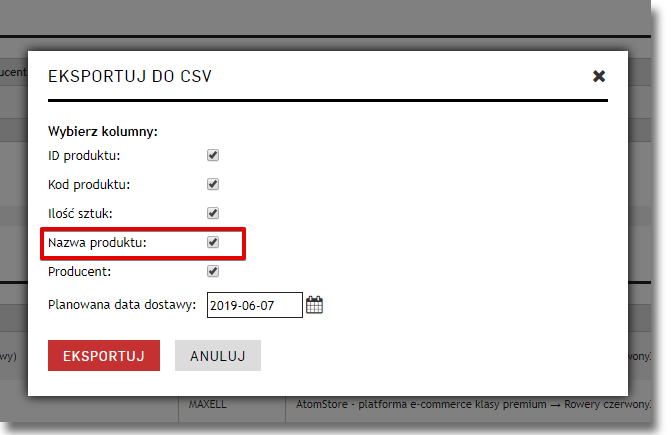 Dodaliśmy możliwość wyświetlania nazwy produktu podczas eksportu raportu z braków do pliku CSV - podczas generowania raportu w zakładce Magazyn → Brakujące towary pojawiła się możliwość dodania nazwy produktu w tworzonym eksporcie.