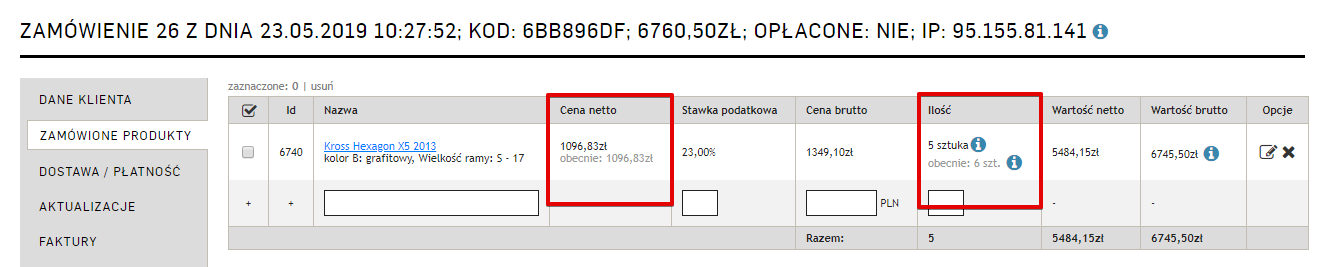 Dodaliśmy informację o aktualnej cenie oraz stanie magazynowym produktu w edycji zamówienia - w edycji oraz w podglądzie zamówienia wyświetlane są informacje na temat aktualnej ceny oraz stanu magazynowego zamówionego produktu.