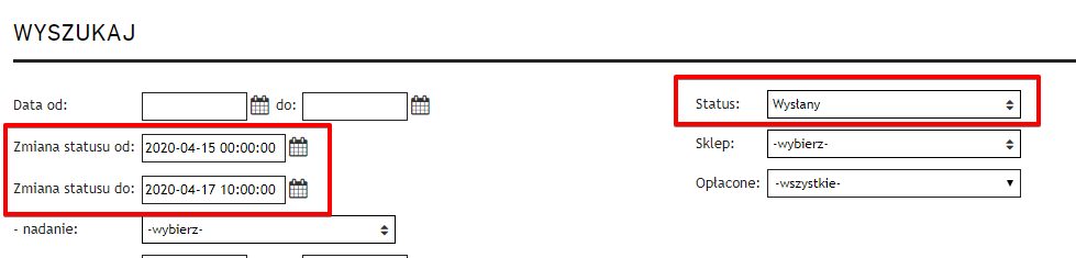 Nowy mechanizm filtrowania zamówień na podstawie czasu zmiany statusu - w zakładce z zamówieniami (Sprzedaż → Zamówienia) zmodyfikowaliśmy filtry “Zmiana statusu od:” oraz “Zmiana statusu do:”, które pozwalają na wybranie konkretnej godziny zmiany statusu zamówienia. Dodatkowo filtry te będą działały również przy wyborze konkretnego statusu w filtrze "Status".