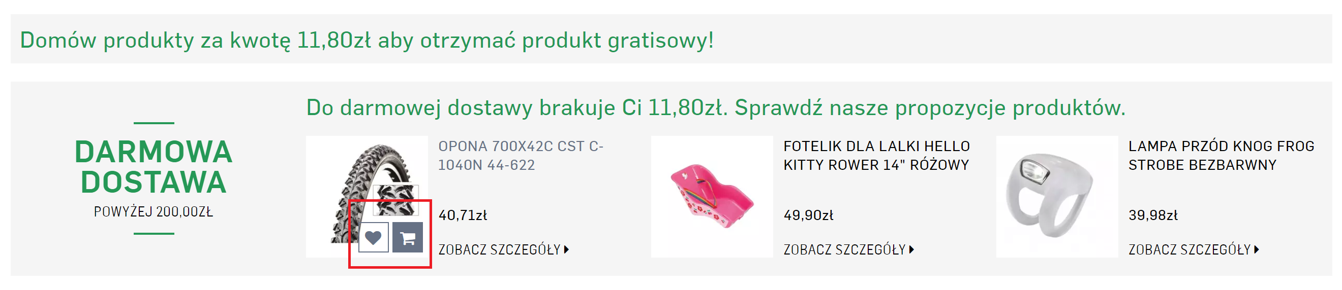 Dodaliśmy możliwość szybkiego dodania produktów z listy "Do darmowej dostawy brakuje Ci..." w koszyku - podczas składania zamówienia, klient, któremu wyświetli się boks "Do darmowej dostawy brakuje Ci...", będzie mógł dodać produkt bez konieczności przechodzenia na jego stronę.