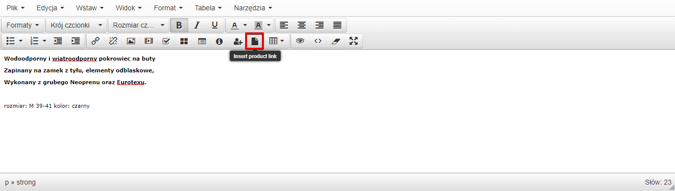 Możliwość wstawiania linków do produktu w edytorze tekstowym