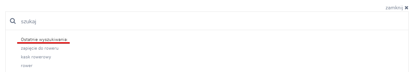 Do wyszukiwarki Smart Cloud Search dodaliśmy funkcję, która wyświetla ostatnio wyszukiwane przez klienta frazy (zapisywane w sesji użytkownika).
