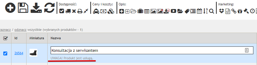 Zmodyfikowaliśmy sposób informowania administratora o tym, że produkt jest usługą. W zakładce Katalog → Produkty towary, które są usługami będą oznaczone w następujący sposób: