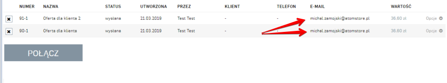 Dodano możliwość łączenia ofert dla tych samych adresów e-mail - w panelu handlowca dodano możliwość łączenia ofert stworzonych dla klienta niezalogowanego, które zostały wysłane na ten sam adres e-mail.
