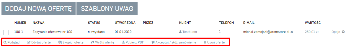 Dodano obsługę wielu szablonów oferty - wprowadziliśmy możliwość stworzenia wielu indywidualnych szablonów ofert i ich wyboru podczas wysyłki oferty.