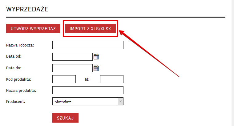 Dodano opcje importu wyprzedaży z pliku XLS/XLSX - funkcja znajduje się w Marketing i promocje → Wyprzedaże.