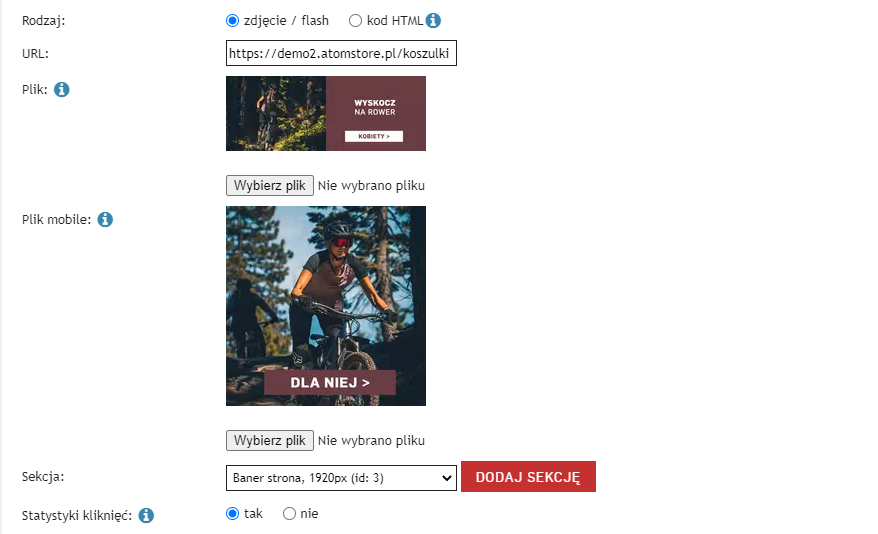 - Gdy wgrywasz banery na sklep, przygotuj ich wersję mobilną (mniejszą, lżejszą i dostosowaną pod smartfony).