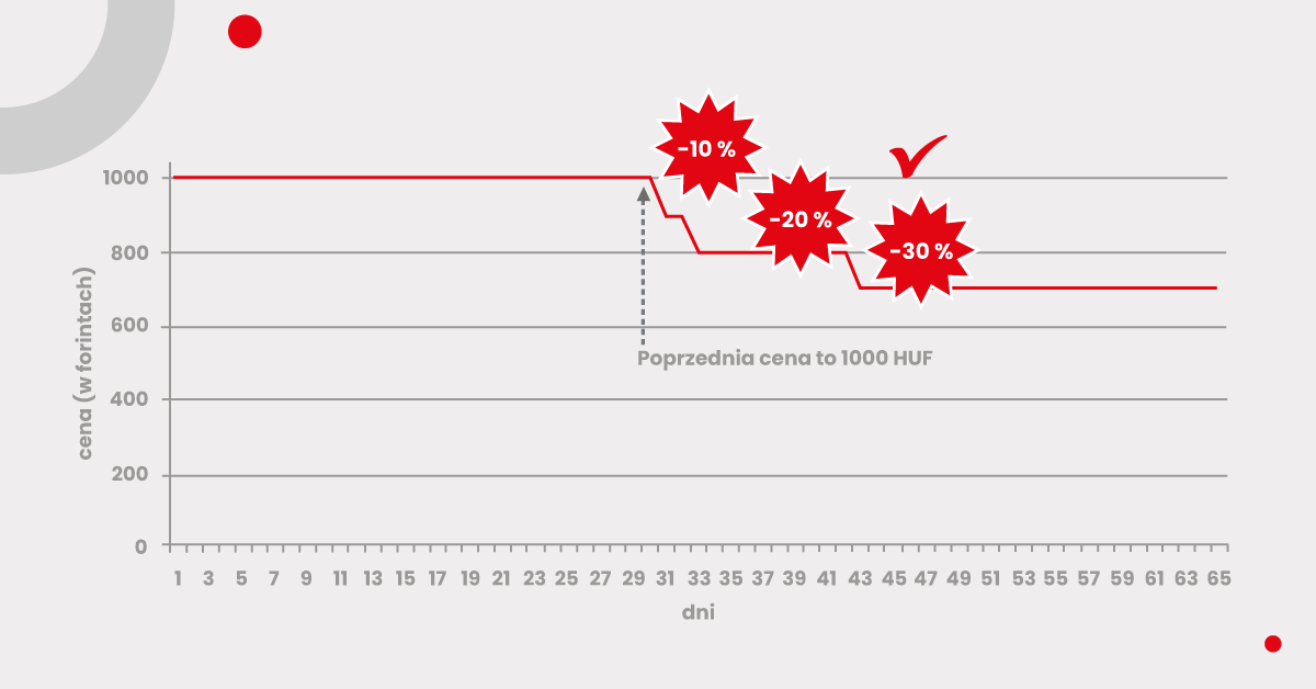 Warto pochylić się także nad przypadkiem, gdy doszło do podwyższenia ceny, a sprzedawca chce stosować promocją progresywną, ponieważ tu Węgrzy stosują specjalne zasady. Zgodnie z węgierskimi przepisami jeżeli stosujemy promocję progresywną to ceną poprzednią jest cena przed zastosowaniem pierwszej obniżki. Warunek to konieczność obniżania ceny stopniowo i bez przerwy, a cena nie może wzrosnąć ani razu w tym czasie.