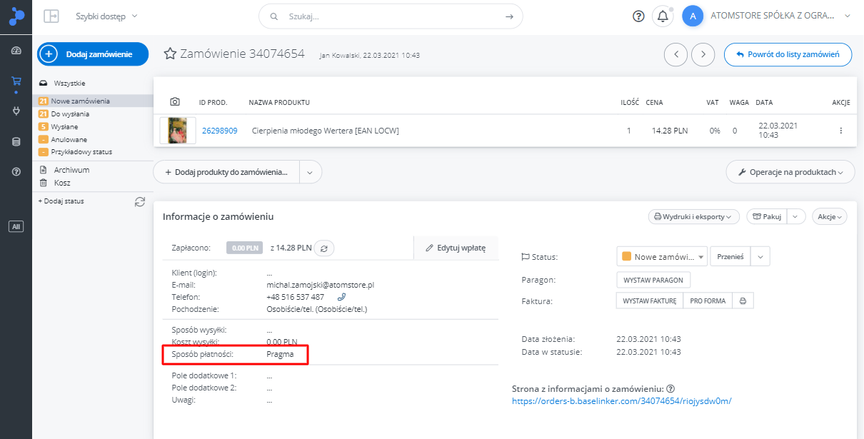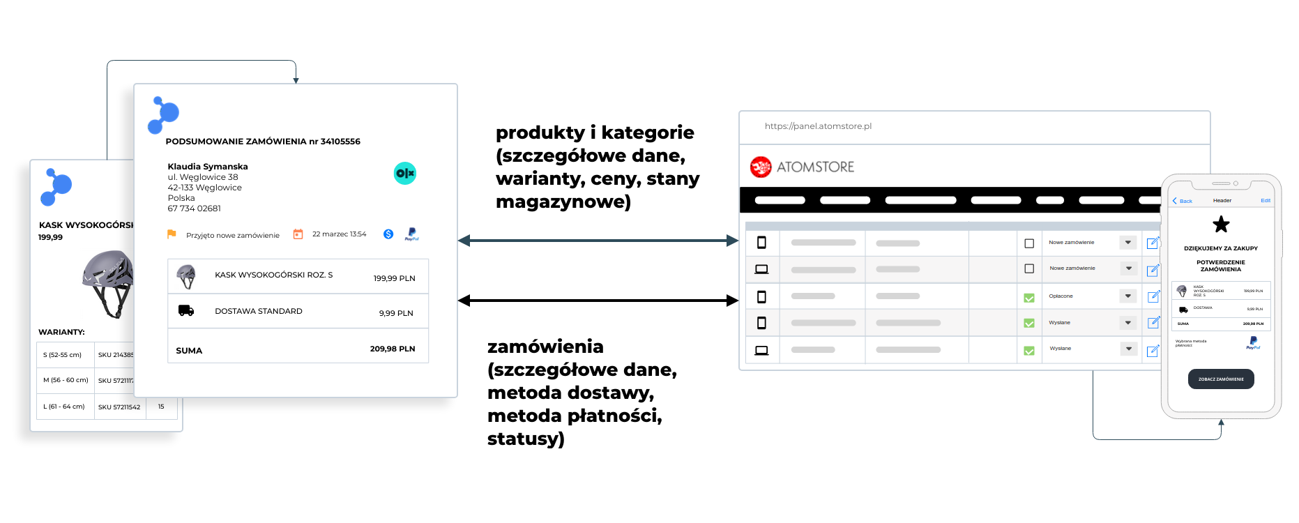 - przesyłanie zamówień z AtomStore do BaseLinker,