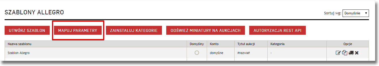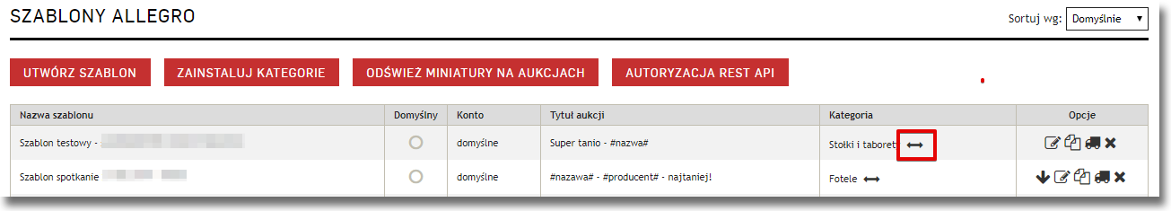 Trzeci sposób (zalecany) to edycja każdego szablonu akucji poprzez kliknięcie ikonki mapowania w widoku listy szablonów, w kolumnie "Kategoria".