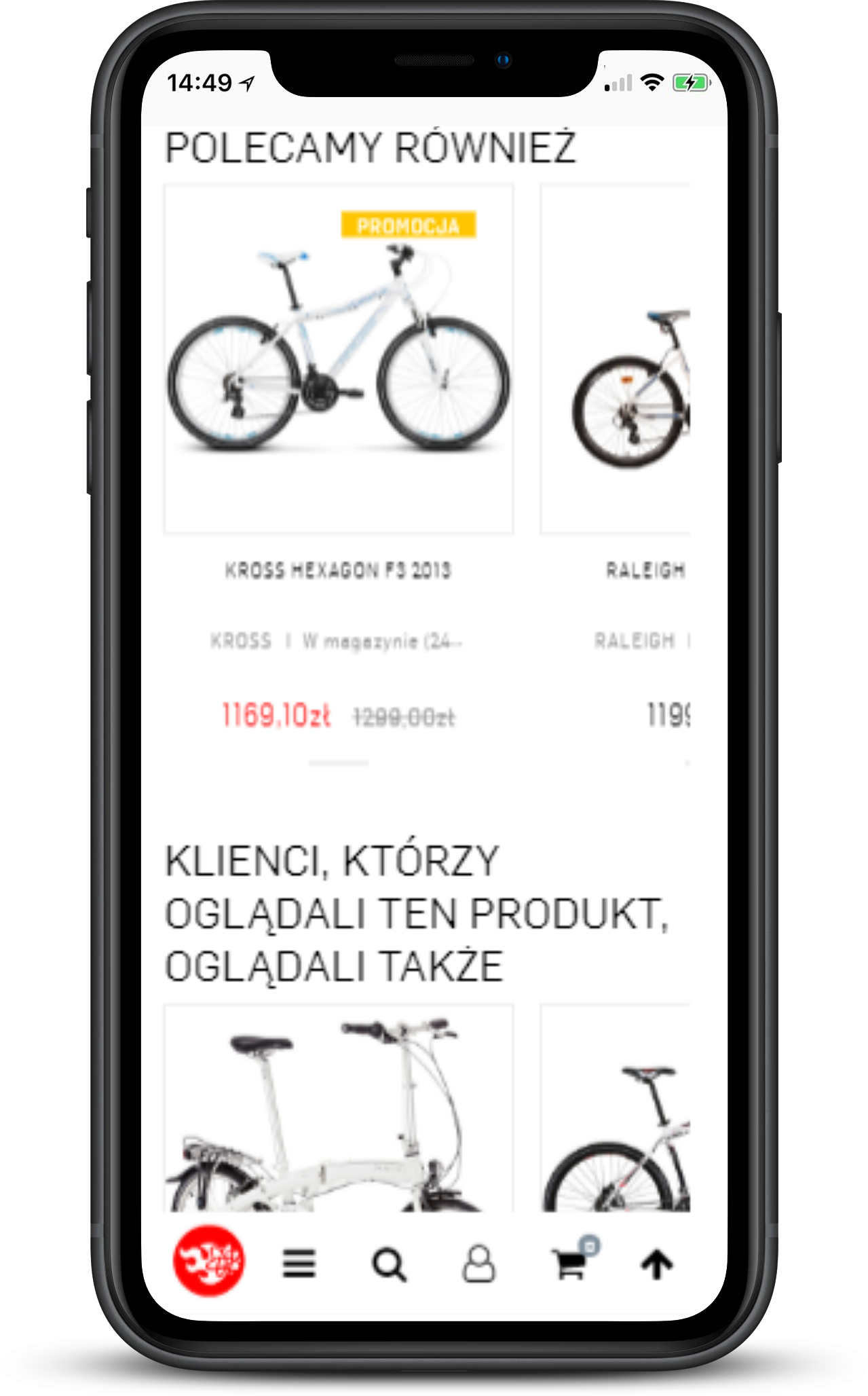 Polecane lub powiązane produkty wyświetlamy w formie galerii, które użytkownik może przewijać lewo-prawo. Ten sam mechanizm zastosowaliśmy w cross-sellingu na etapie koszyka.