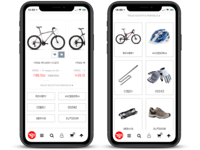 Wdrożone przez nas dolne menu to innowacyjne rozwiązanie, które póki co znajdziemy w największych e-commerce’ach na świecie. Belka pojawia się, gdy użytkownik chce wrócić do góry ekranu, a wyłącza, gdy dotrze do góry ekranu. Rozwiązanie jest bardzo użyteczne, zwłaszcza gdy klient przegląda kartę produktu, ale chce zmienić kategorię lub przejść do koszyka i dokonać zakupu. W obu przypadkach nie musi wracać na samą górę, by dokonać tego działania.