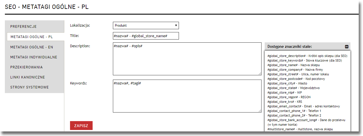 - #global_store_keywords# – słowa kluczowe (dla SEO),