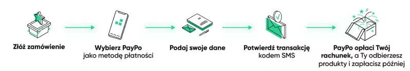 - Klient otrzymuje towar, sprawdza go, po czym spłaca do PayPo należność w