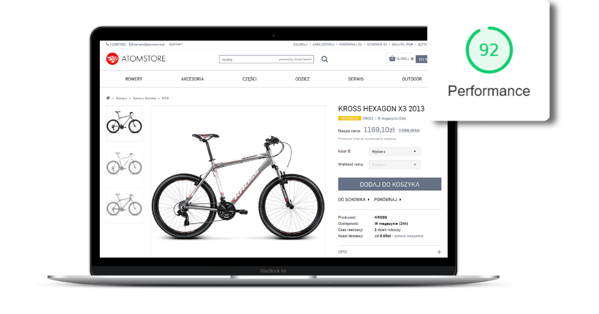 Google bierze również pod uwagę architekturę strony, czyli jej logiczność i poprawność. Dobrze opracowana struktura katalogu pomaga Google poukładać tematycznie zawartość witryny. Last, but not least to optymalizacja strony pod mobile. Responsywność grafiki, a także szybkość ładowania zawartości windują stronę w rankingu. To, jak szybko www się ładuje zależy już od autorów kodu. W AtomStore web performance to jeden z priorytetów. Mając w swoim portfolio kilkaset sklepów internetowych, nie możemy pozwolić, aby działały one wolniej niż ich konkurencja.